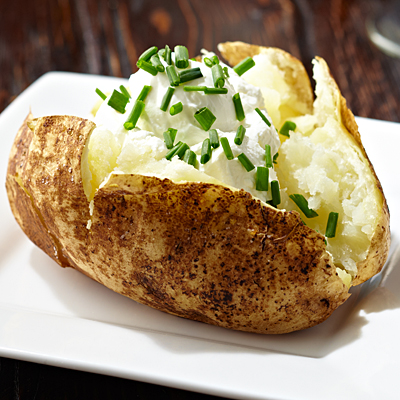 Clean and wash potato. Poke holes in the potato with a fork. Place it on the tray. Cook as per oven profile and serve.