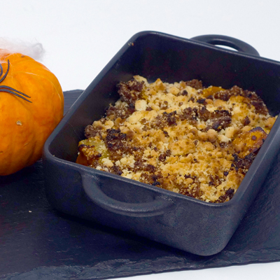 - Arrange crumble on fruit filling and cook using the Halloween crumble oven profile.