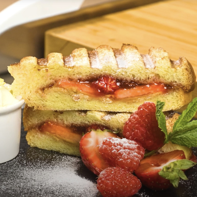 See the video here: Merrychef Panini Press, PBJ Brioche