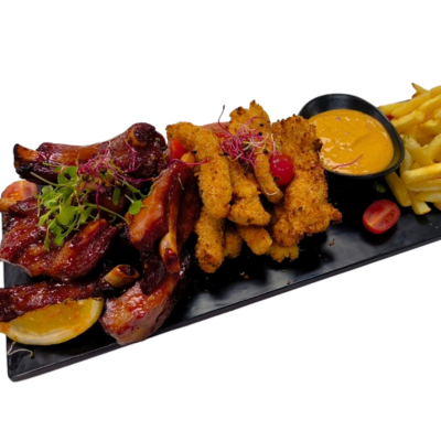 Stage 3 instruction: Place the Chicken Strips and Fries